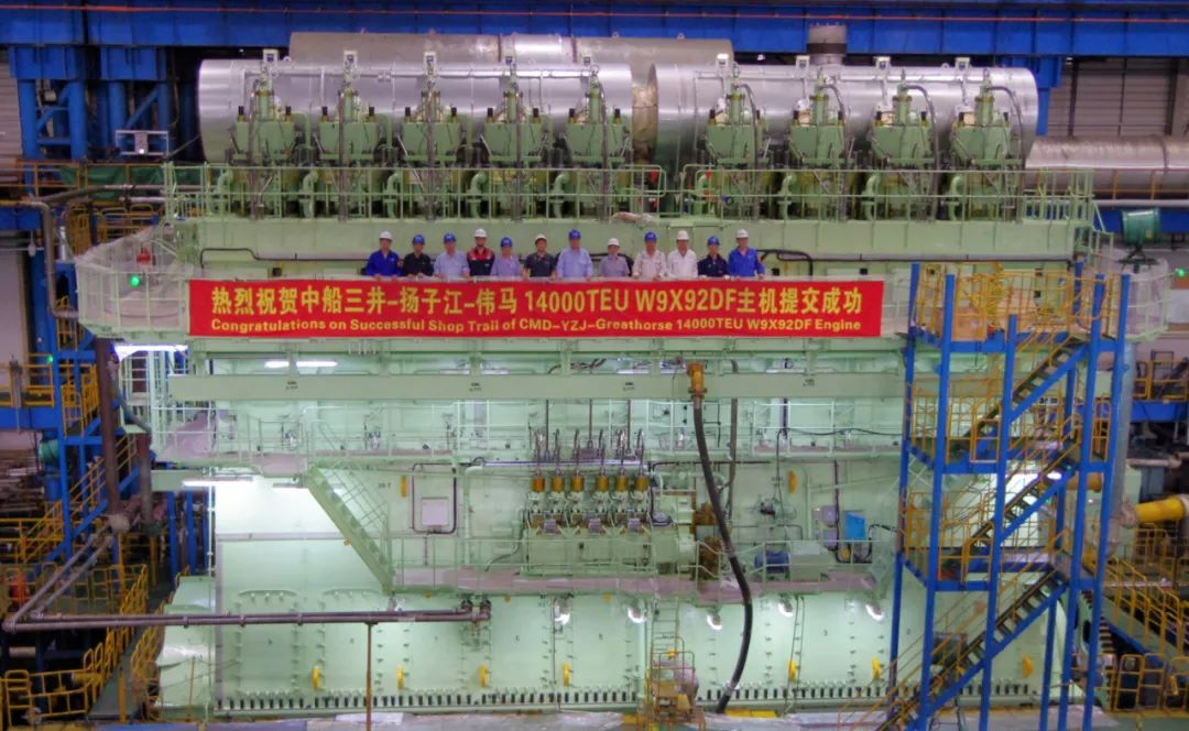 CMD-WinGD 9X92DF雙燃料主機最大功率42560kW,由中船動力集團下屬溫特圖爾發動機有限公司研發,上海中船三井造船柴油機有限公司生產制造將安裝在14000TEU集裝箱船上