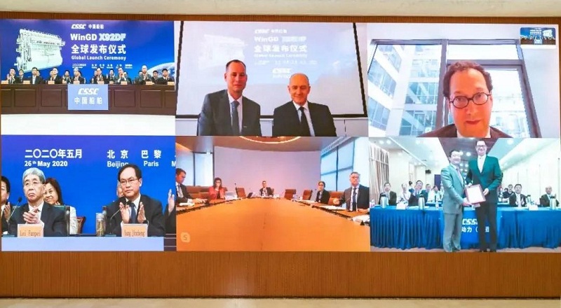 ????發(fā)布儀式采用視頻形式,在中國(guó)北京、上海,法國(guó)巴黎、馬賽和瑞士溫特圖爾全球五地遠(yuǎn)程連線同步舉行。在各方嘉賓見證下,WinGD X92DF通過BV(法國(guó)船級(jí)社)型式認(rèn)可,雷凡培宣布向全球發(fā)布。