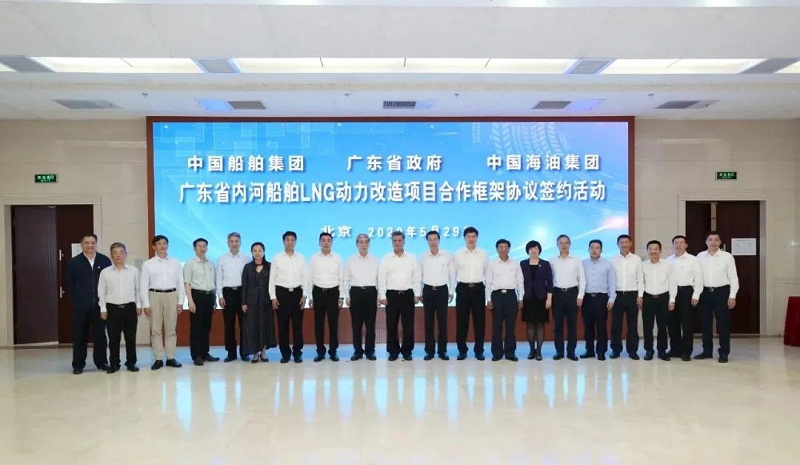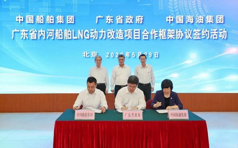 ????5月29日,中國船舶集團(tuán)有限公司與廣東省人民政府、中國海洋石油有限公司在京簽署《廣東省內(nèi)河船舶LNG動力改造項目合作框架協(xié)議》。廣東省委副書記、省長馬興瑞,中國船舶集團(tuán)黨組書記、董事長雷凡培,中國海油黨組書記、董事長汪東進(jìn),中國船舶集團(tuán)黨組成員、副總經(jīng)理杜剛,中國海油黨組成員、副總經(jīng)理陳壁出席簽約儀式。廣東省副省長覃偉中,中國船舶集團(tuán)黨組成員、副總經(jīng)理孫偉,中國海油黨組成員、總會計師溫冬芬分別代表各方在協(xié)議上簽字。
