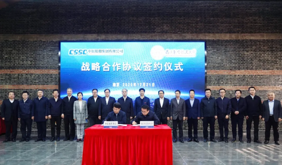 12月21日,中國船舶集團有限公司在南京分別與南京航空航天大學、江蘇科技大學簽署戰略合作協議。中國船舶集團黨組書記、董事長雷凡培,黨組副書記、總經理楊金成,黨組成員、副總經理錢建平、杜剛,南航黨委書記鄭永安,黨委副書記、校長單忠德,江科大黨委書記葛世倫,黨委副書記、校長周南平等領導出席簽約儀式。