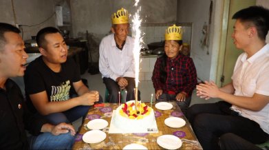 在翻查民情日志的時(shí)候,我看到了兩位老人家的生日。他們無兒無女,我便籌劃著給老兩口過一次生日。后經(jīng)支部研究決定,我們?yōu)槔蟽煽谶^了一個(gè)溫暖的生日。