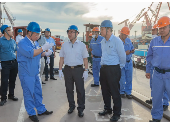 7月21日,工信部黨組成員、總工程師田玉龍到中國船舶集團有限公司大連地區成員單位調研指導工作。田玉龍一行先后到中國船舶集團第七六〇研究所、大連船舶重工集團有限公司實地考察了有關試驗場和在建船舶,聽取了兩家單位整體發展情況特別是科技創新方面的工作匯報,并對下一步工作提出要求。
