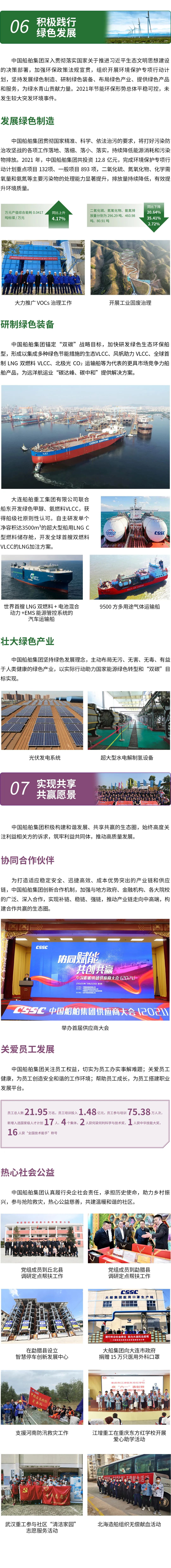 《報(bào)告》緊扣2021年國(guó)家經(jīng)濟(jì)社會(huì)發(fā)展重要事件,從“強(qiáng)化企業(yè)創(chuàng)新主體地位,打造國(guó)家戰(zhàn)略科技力量”責(zé)任專題講述了中國(guó)船舶集團(tuán)履行公眾責(zé)任,助力經(jīng)濟(jì)社會(huì)高質(zhì)量發(fā)展、可持續(xù)發(fā)展的故事。從“弘揚(yáng)偉大建黨精神”“堅(jiān)定不移履行強(qiáng)軍首責(zé)”“持之以恒壯大主業(yè)實(shí)業(yè)”“加快高水平科技自立自強(qiáng)”“深化改革、強(qiáng)化管理”“積極踐行綠色發(fā)展”“實(shí)現(xiàn)共享共贏愿景”七個(gè)方面全方位展示了中國(guó)船舶集團(tuán)履行軍工央企政治責(zé)任、經(jīng)濟(jì)責(zé)任、環(huán)境責(zé)任、伙伴責(zé)任的履責(zé)形象和履責(zé)績(jī)效。