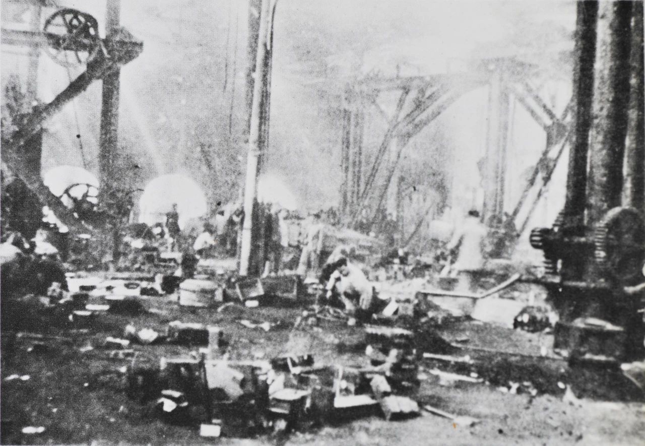1949年5月上海,雖然江南造船所經(jīng)歷了英勇的護(hù)廠(chǎng)斗爭(zhēng),但此時(shí)的船塢、廠(chǎng)房、設(shè)備,均已遭受到嚴(yán)重的破壞。
