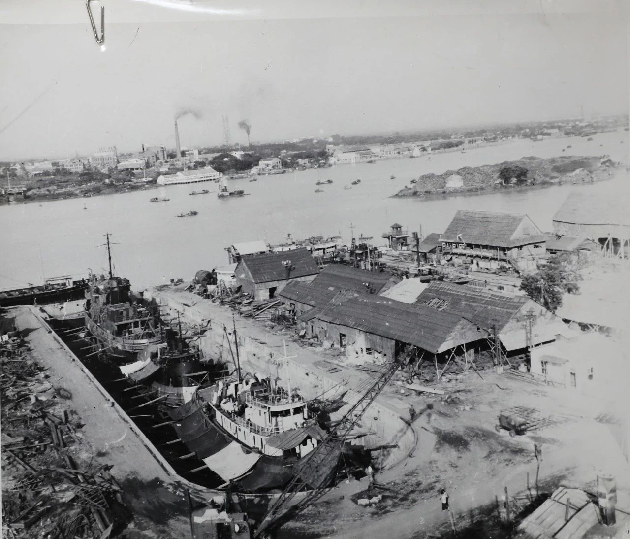 1958年廣州,1958年,廣船國(guó)際的前身廣州造船廠(chǎng)的造船塢,圖中的履帶式起重機(jī)是廣州造船廠(chǎng)主要的起重設(shè)備。