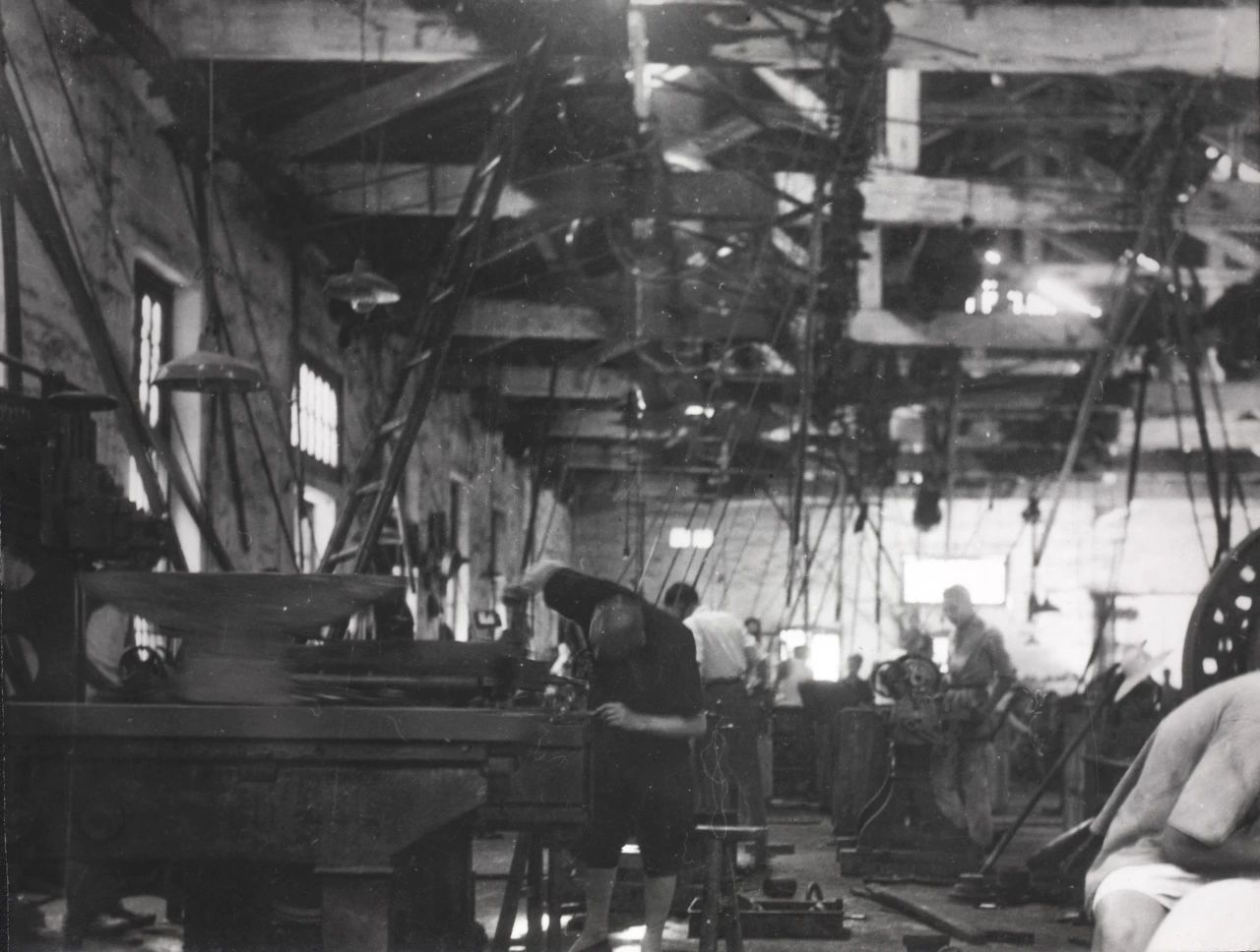 1934年武漢,解放前,沒(méi)有產(chǎn)線(xiàn)的概念,全部利用張之洞早年開(kāi)辦的紡紗局廠(chǎng)房,撥用了其他廠(chǎng)的舊機(jī)床設(shè)備,進(jìn)行手工作坊式生產(chǎn)。