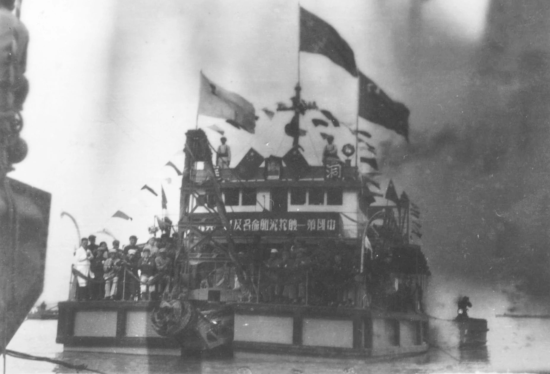 1949年7月上海,1949年7月23日,江南造船所舉行“職工慶功大會(huì)”。上海市市長(zhǎng)兼軍管會(huì)主任陳毅、副市長(zhǎng)曾山、華東海軍司令員張愛(ài)萍、上海市總工會(huì)主席劉長(zhǎng)勝等出席了大會(huì)。會(huì)上總結(jié)修復(fù)廠(chǎng)房設(shè)備的經(jīng)驗(yàn),宣布恢復(fù)生產(chǎn)表彰有功人員。全所有 134人被評(píng)為一、二、三等功臣受到表彰。