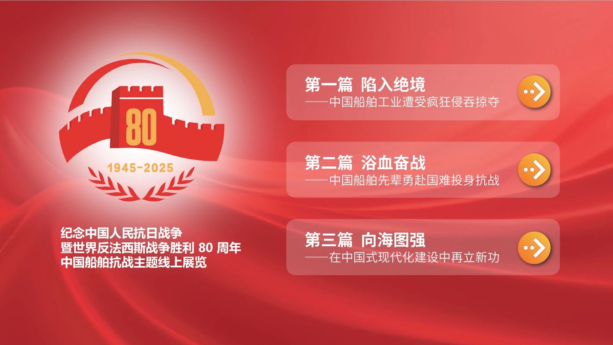9月4日,在紀(jì)念中國人民抗日戰(zhàn)爭暨世界反法西斯戰(zhàn)爭勝利80周年之際,中國船舶集團有限公司“追尋紅色記憶 弘揚抗戰(zhàn)精神”主題線上展覽上線發(fā)布。