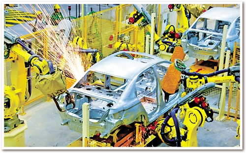 日前,記者在東風汽車公司旗下神龍汽車公司成都工廠焊裝車間看到,占地面積約10個足球場的車間儼然就是一個“機器人王國”:442臺各種機器人都在忙碌著,所有點焊、弧焊、激光焊、螺柱焊、涂膠、包邊、鉚接、部件搬運等“重活、累活”全部由機器人自動完成。焊裝分廠廠長孫繼勝介紹說,除442臺機器人外,車間還有另外一個“撒手锏”??六面體轉臺設備。“原來生產(chǎn)1個車型要建6條生產(chǎn)線,現(xiàn)在1條生產(chǎn)線就可以生產(chǎn)6種車型。”孫繼勝說。