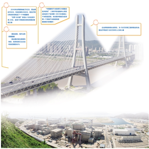 黨的十八大以來的5年,中國(guó)建筑連續(xù)5次獲得國(guó)務(wù)院國(guó)資委中央企業(yè)負(fù)責(zé)人經(jīng)營(yíng)業(yè)績(jī)考核A級(jí),任期考核蟬聯(lián)“業(yè)績(jī)優(yōu)秀企業(yè)”榮譽(yù)稱號(hào);5年來,中國(guó)建筑在財(cái)富“世界500強(qiáng)”排名從100位躍升至24位;5年來,中國(guó)建筑連續(xù)穩(wěn)居全球投資建設(shè)集團(tuán)之首,獲得標(biāo)普、穆迪、惠譽(yù)等國(guó)際三大評(píng)級(jí)機(jī)構(gòu)信用評(píng)級(jí)A級(jí),為全球建筑行業(yè)最高信用評(píng)級(jí)。自1982年組建以來,中國(guó)建筑實(shí)現(xiàn)“每10年多環(huán)比增長(zhǎng)10倍”的快速發(fā)展目標(biāo)。2016年,中國(guó)建筑合同額突破2萬億、營(yíng)業(yè)額近萬億、利潤(rùn)總額520億,營(yíng)業(yè)收入、利潤(rùn)總額分別位居國(guó)務(wù)院國(guó)資委管理的中央企業(yè)第4位、第5位,相當(dāng)于用5年的時(shí)間再造了一個(gè)中國(guó)建筑。