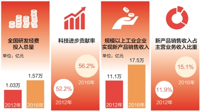 “創新驅動發展戰略大力實施,創新型國家建設成果豐碩,天宮、蛟龍、天眼、悟空、墨子、大飛機等重大科技成果相繼問世。”過去5年間,創新驅動可謂最大發展亮點之一。
