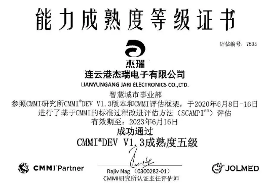 此次CMMI-Dev ML5級認(rèn)證的順利通過,標(biāo)志著杰瑞電子的軟件過程組織、技術(shù)研發(fā)與項目管理已經(jīng)達到國際領(lǐng)先標(biāo)準(zhǔn),具備優(yōu)秀的軟件成熟度及軟件項目管理能力。