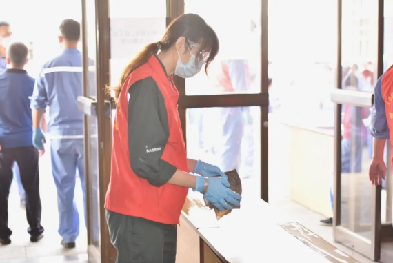 7月23日下午15時左右,志愿者按照工作方案部署,分頭行動,從嚴(yán)從快從細(xì)落實各項工作任務(wù);16時,與來自大連市機(jī)車醫(yī)院的26名醫(yī)護(hù)人員和第三方機(jī)構(gòu)的9名檢測人員一起,正式開始了核酸檢測工作。