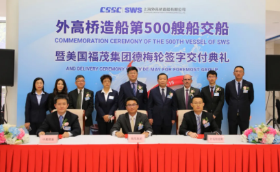 4月15日,由中國船舶集團(tuán)旗下外高橋造船自主開發(fā)、設(shè)計和建造的21萬噸紐卡斯?fàn)栃蜕⒇洿暗旅贰碧柦桓睹绹C瘓F(tuán)。這是外高橋造船自2003年交付第一艘商品船以來,精心出品的第500艘船,完工總量累計8968萬載重噸,年均27.8艘/498.2萬載重噸,位居中國第一,躋身全球前列。