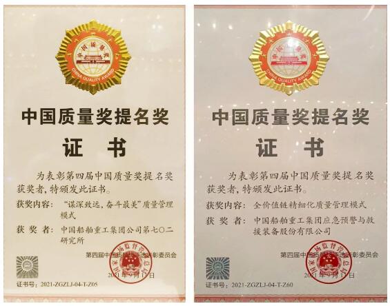 9月16日,在中國質(zhì)量(杭州)大會上,第四屆中國質(zhì)量獎評選結(jié)果揭曉,中國船舶集團旗下七〇二所、中船應(yīng)急分別以“謀深致遠,奮斗最美”質(zhì)量管理模式、全價值鏈精細化質(zhì)量管理模式,榮獲第四屆中國質(zhì)量獎提名獎。