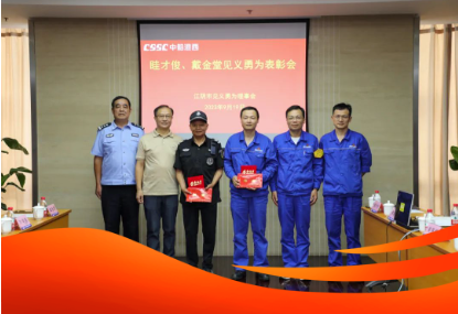 9月19日,江陰市見義勇為基金會專程來到中國船舶集團旗下中船澄西,對生產管理部眭才俊進行表彰。