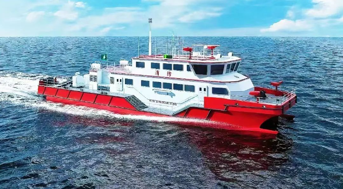 3月18日,中國(guó)澳門海關(guān)消防救援船在梧州舉行開工儀式。該項(xiàng)目由中國(guó)船舶集團(tuán)廣州公司下屬澳門公司承接,中船廣西下屬桂船公司建造,七〇一所下屬武漢船舶設(shè)計(jì)研究院設(shè)計(jì),采用雙體穿浪船型,全鋁合金焊接結(jié)構(gòu)。