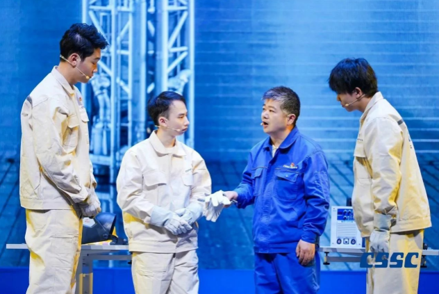 現(xiàn)場(chǎng),來自中國(guó)船船集團(tuán)江南造船(集團(tuán))有限責(zé)任公司、滬東中華造船(集團(tuán))有限公司、上海外高橋造船有限公司、中船動(dòng)力(集團(tuán))有限公司和中國(guó)船舶集團(tuán)公司第七〇二研究所的青年職工將真實(shí)工作案例與理論原文結(jié)合,將“發(fā)展新質(zhì)生產(chǎn)力”作為工作方向與指引,將他們的造船故事親身演繹。故事從《船舶青年說》起航,共講述了五大篇章,分別為江南造船如何延續(xù)百年初心、滬東中華造船LNG船毫厘鑄匠心、七〇二所從“蛟龍”號(hào)到“奮斗者”號(hào)將深潛進(jìn)行到底、外高橋造船“愛達(dá)?魔都號(hào)”大型郵輪“4個(gè)120天”的極限挑戰(zhàn)、江南造船“鋼鐵心臟”工程師攻克大型作戰(zhàn)艦建造的不凡創(chuàng)新路,臺(tái)詞鏗鏘有力、情感真摯流淌,繪就了一幅精彩的中國(guó)船舶夢(mèng)畫卷。