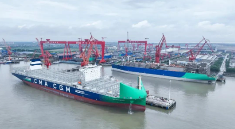 近日,中國船舶集團旗下滬東中華建造的13000TEU雙燃料集裝箱船“達飛·貝倫”號命名交付。該公司上半年實現(xiàn)累計交船12艘,完成年度計劃的60%。