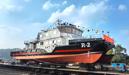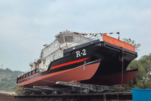 12月6日,中國船舶集團(tuán)旗下廣州公司承接七〇一所下屬武漢船舶設(shè)計(jì)研究院設(shè)計(jì)、桂江造船建造的澳門海關(guān)中型消防救援船“R-2”號下水
