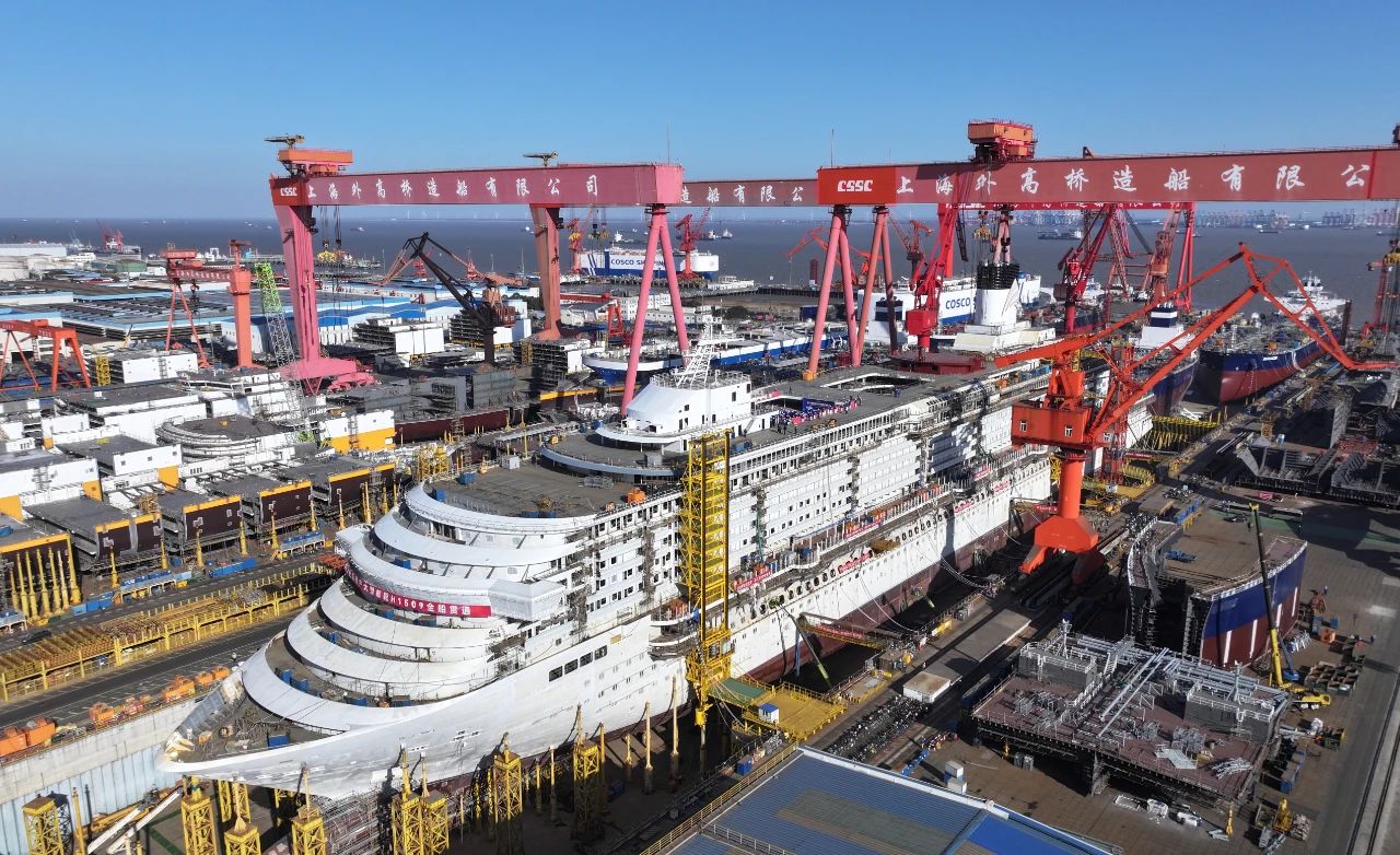 1月15日,第二艘國(guó)產(chǎn)大型郵輪“愛(ài)達(dá)·花城號(hào)”在中國(guó)船舶集團(tuán)旗下外高橋造船實(shí)現(xiàn)全船貫通的里程碑節(jié)點(diǎn),全面轉(zhuǎn)入全船內(nèi)裝工程、設(shè)備、系統(tǒng)調(diào)試下半場(chǎng)。