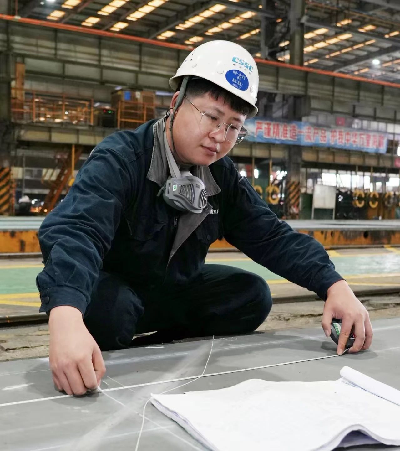制造一部支持精控三班邱玉和他的同事們,就是這樣的一支團隊。他們從鋼板下料切割開始,始終跟進每一個生產環節的精度控制情況,隨時督促調整、修正,將船體各個結構的定位基準誤差控制在毫米級。