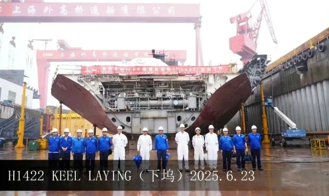 在該船的船建造過程中,建造團隊齊心協(xié)力,與船東船檢密切合作,合理調(diào)配生產(chǎn)資源,統(tǒng)籌物流,確保分段按計劃及時供應(yīng),順利完成了總段塞軸裝槳及泵艙完整性目標。目前,該船關(guān)鍵路徑分段已全部配齊,整船分段結(jié)構(gòu)全部完工,為下塢后的快速搭載創(chuàng)造了有利條件。