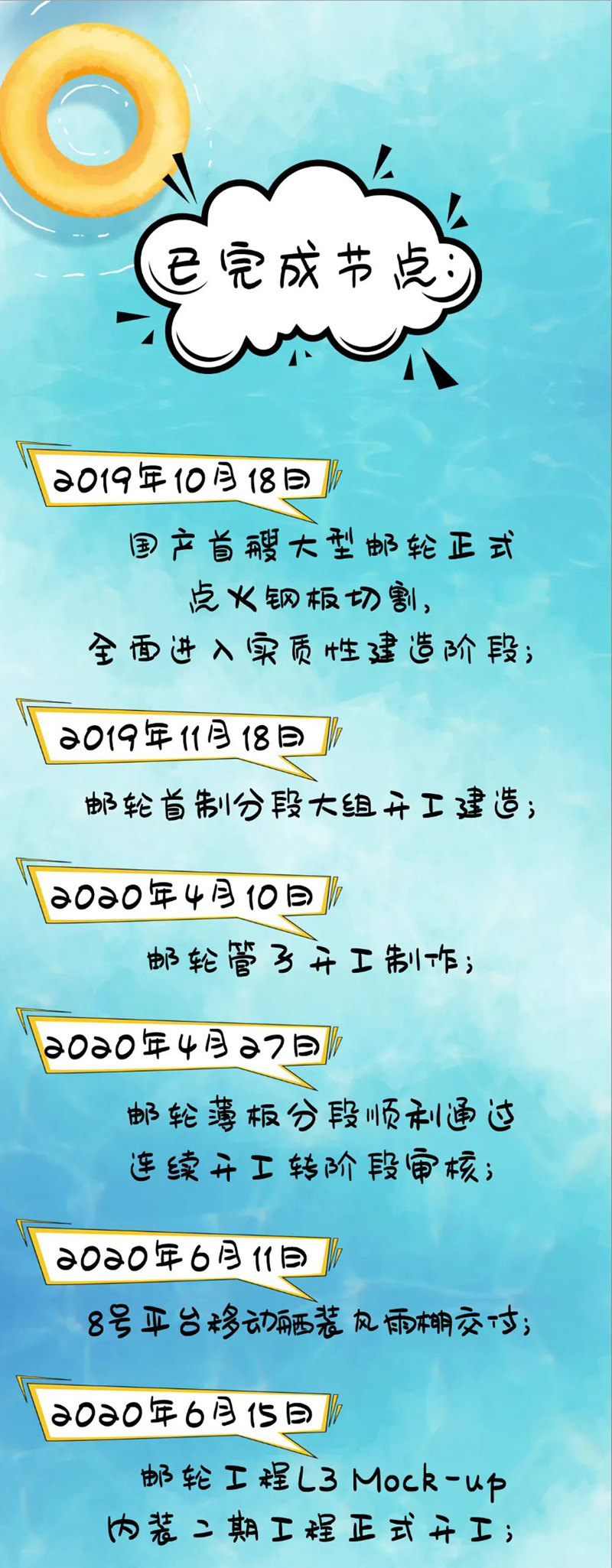 ? 重點聚焦于項目HSSE組織管理、制度保障、教育培訓、技術保障、分包商管理、監督檢查、應急保障、文化體系建設等八個方面,已完成10項安全程序文件和三千多人次的安全計劃培訓,形成了大型國產郵輪安全管理體系,為“一號工程”保駕護航。