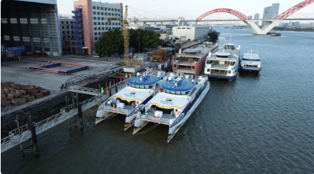 2020年12月30日,中國船舶集團旗下遠舟公司所屬英輝南方造船(廣州番禺)有限公司建造的“新海韻”號、“新海駿”號兩艘鋁合金雙體高速客船,同時在廣州市番禺區(qū)英輝南方碼頭順利交付。“新海韻”、“新海駿”是英輝南方為船東建造的藍色干線系列高速客船的第8和第9艘,船長42.8米,寬10.3米,載客199人,設(shè)計航速35節(jié)。遠舟公司所屬英輝南方在鋁合金高速客船第三代船型基礎(chǔ)上,開展技術(shù)創(chuàng)新和船型優(yōu)化,開發(fā)完成了“新海韻”、“新海駿”為代表的第四代新船型。