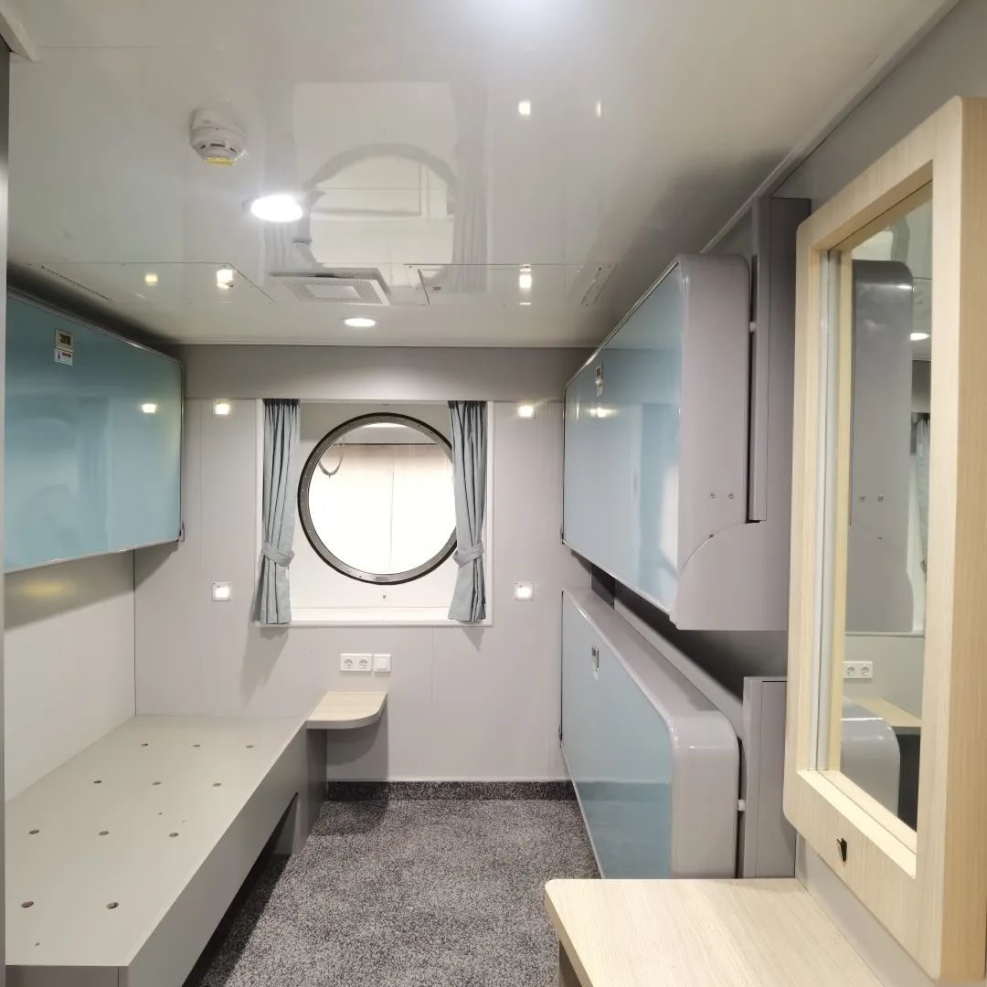 實際上,通過“均衡有序”的分工策劃,該船出塢前已完成了3甲板以下98%的艙室涂裝工作,涂裝完整性實現了突破和提升。 內裝材料幾乎100%國產化,該船樣板艙品質得到了意大利船東方的專家及藝術家的充分認可!