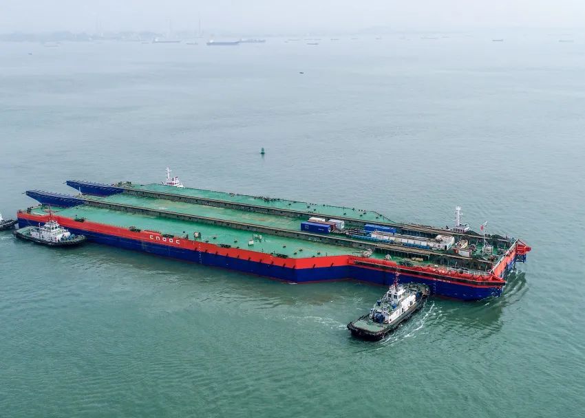改造后的“海洋石油229”號(hào)導(dǎo)管架運(yùn)輸下水能力從30000噸提升至38500噸,可滿足高達(dá)302米、重達(dá)3萬(wàn)噸的“海基一號(hào)”裝船、運(yùn)輸?shù)刃枨蟆?