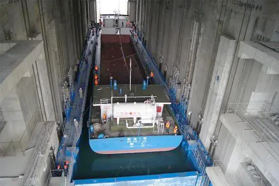 而在上述水電站過船設(shè)施工程建設(shè)中,也出現(xiàn)了中國(guó)船舶集團(tuán)旗下院所、船廠、配套企業(yè)等相關(guān)單位的身影。烏江構(gòu)皮灘水電站通航工程被視為貴州融入長(zhǎng)江、通江達(dá)海的關(guān)鍵工程。該工程線路總長(zhǎng)2306米,概算總投資29.51億元,設(shè)計(jì)通航標(biāo)準(zhǔn)為四級(jí)航道,最高通航水頭達(dá)199米,是世界上通航水頭最高、水位變幅最大的通航工程。