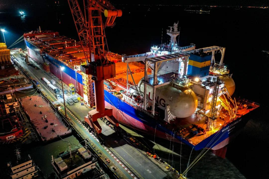 1月28日,中國船舶集團(tuán)旗下外高橋造船自主研發(fā),攜手中船貿(mào)易,為新加坡EPS公司建造的全球首艘液化天然氣(LNG)雙燃料動(dòng)力20.9萬載重噸紐卡斯?fàn)栃蜕⒇洿?