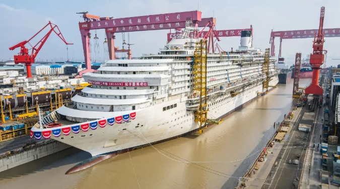 “愛達·花城號”由中船集團旗下外高橋造船于2022年8月開工建造,去年4月入塢搭載,今年1月實現(xiàn)全船貫通。“愛達·花城號”長341米、寬37.2米、約14.19萬總噸,相比首艘國產大型郵輪“愛達·魔都號”體量更大、建造物量更多,對設計建造管理能力提出了更高要求。目前,“愛達·花城號”整體建造進度已超過70%,比“愛達·魔都號”起浮時總進度提前12%,結構總裝周期縮短至9個月,標志著我國大型郵輪建造技術邁上了新臺階。